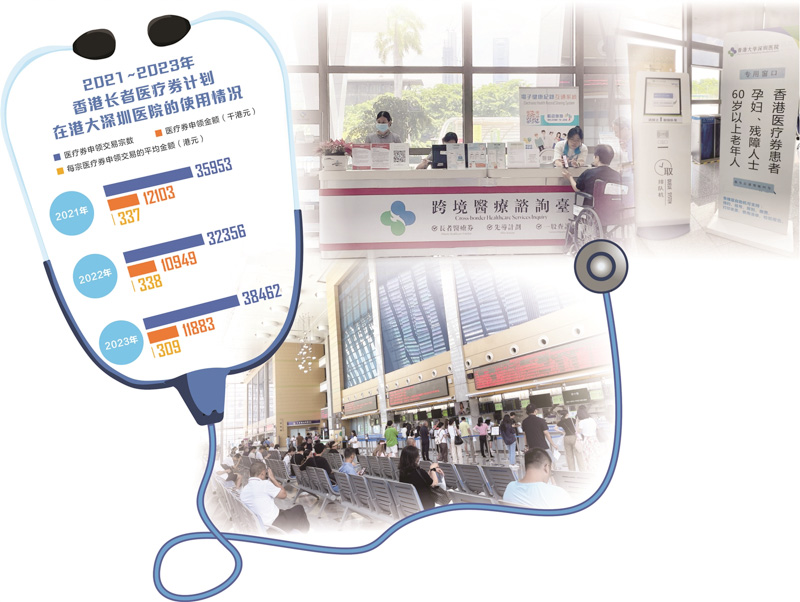 据香港医务卫生局对香港立法会提问的答复,在“长者医疗券计划”下,2021年至2023年香港居民在港大深圳医院申领的医疗券金额共3493.5万港元,申请宗数10.68万宗。