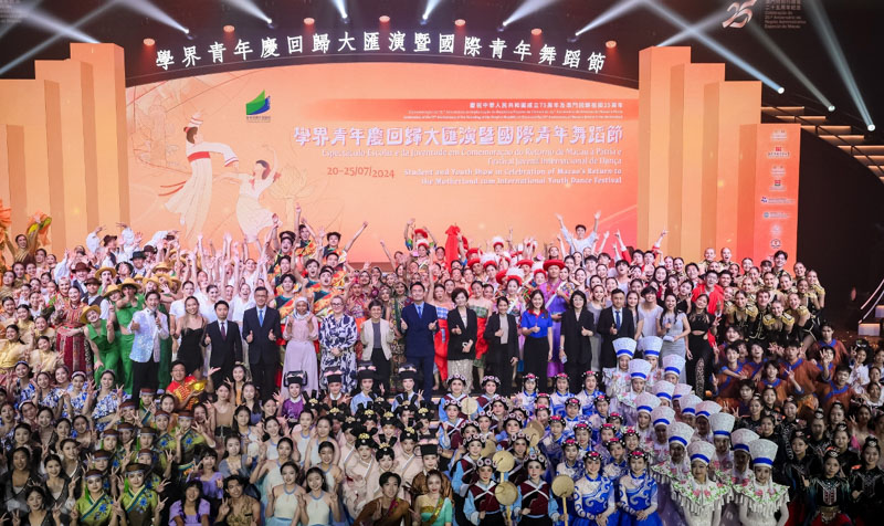 由澳门特区教育及青年发展局、澳娱综合度假股份有限公司及南光(集团)有限公司合办,市政署、旅游局、文化局、体育局、澳门大学、澳门理工大学、亚洲教育北京论坛、澳门中华教育会、澳门高等教育发展促进会、澳门天主教学校联会、澳门公职教育协会及澳门各界青年组织活动筹委会协办,广东省青年联合会支持的“学界青年庆回归大汇演暨国际青年舞蹈节”,于今(25)晚在澳门综艺馆上演压轴节目“国际青年舞蹈节2024—闭幕演出”。