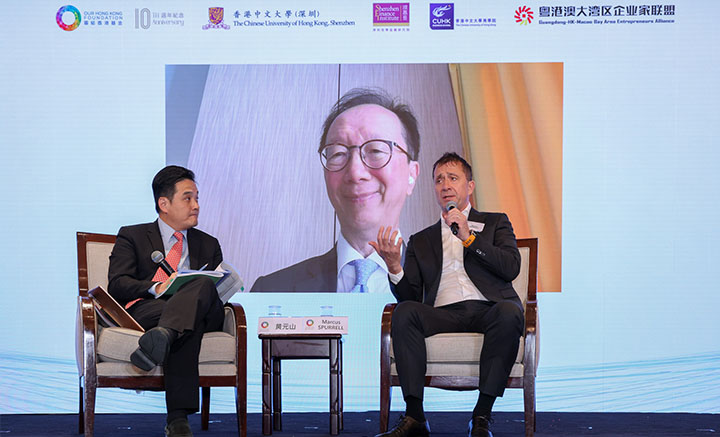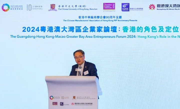 11月6日,由香港中文大学(深圳)、深圳高等金融研究院、团结香港基金、香港中文大学商学院、粤港澳大湾区企业家联盟联合主办的“2024粤港澳大湾区企业家论坛:香港的角色及定位”在香港举办。本次论坛汇聚多位政府官员、企业高管、商业策略家、创新和人工智能权威专家、可持续发展专家和学者等重量级嘉宾,聚焦于香港在联络内地与全球市场、促进大湾区合作、加速高质量发展等方面的独特优势,共同探讨粤港澳大湾区发展的巨大潜力。