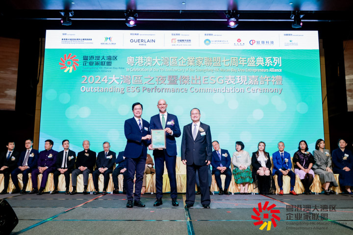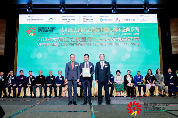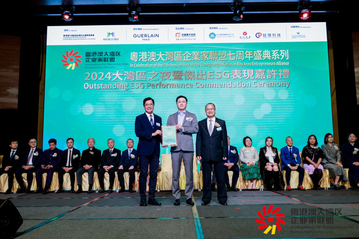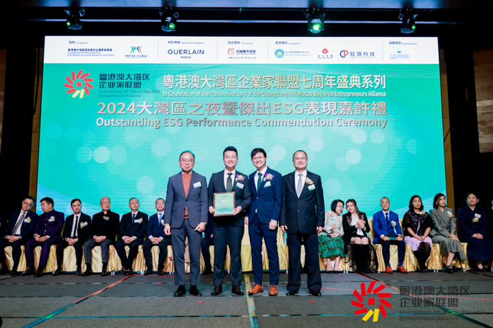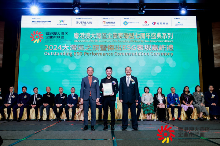 粤港澳大湾区企业家联盟于今年8月成立了ESG委员会,期望为香港以至整个大湾区绿色经济发展,为中华振兴及功在千秋的可持续发展,作出新的贡献。联盟遴选出15家持续深耕ESG发展且成绩卓著的机构,当中包括香港上海滙丰银行、中国银行(香港)、中国万天控股、信德集团、兴证国际金融集团、恩达集团、冠翎科技、万晖五金、仁心牙科、华世界集团、环保协进会、绿色未来基金总会、亚太可持续发展战略研究院、大棠有机生态园等本地大型知名企业和机构,所涉行业涵盖公共事业、科技、医疗、环保团体等多个领域。当晚,由黄伟纶副司长、蔡冠深博士、曾国卫局长一同为各机构代表颁授“大湾区杰出ESG表现机构”嘉许状,以兹表彰。