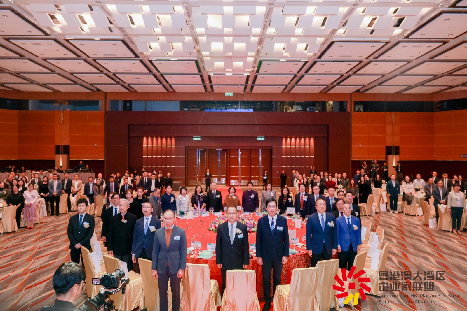 全国政协常委、粤港澳大湾区企业家联盟主席蔡冠深在致辞中表示,粤港澳大湾区企业家联盟成立七年来不断壮大,社会影响力越来越强。主席团成员中,有七位现任的全国政协常委,近七十位现任的全国人大代表或全国政协委员。联盟的成员企业,涵盖从传统产业到高新科技以至高端服务业的精英,得到三地政府的大力支持,和中央驻港、驻澳联络办的高度肯定。
