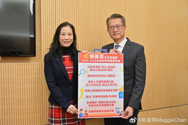 全国人大代表、联盟副主席、香港立法会议员、香港中律协创会会长陈曼琪,于2月5日向特区政府财政司司长陈茂波提出了2025至2026年度《财政预算案》建议,共21项,内容如下: