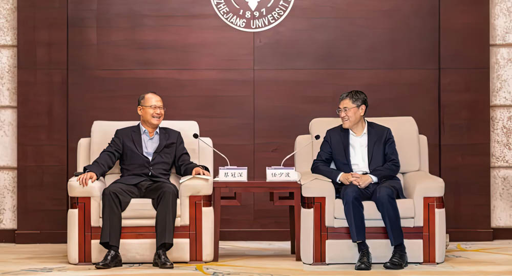 2025年5月11日上午,全国政协常委、粤港澳大湾区企业家联盟主席、新华集团主席蔡冠深博士率团访问浙江大学,与浙大党委书记、教育基金会理事长任少波进行座谈。