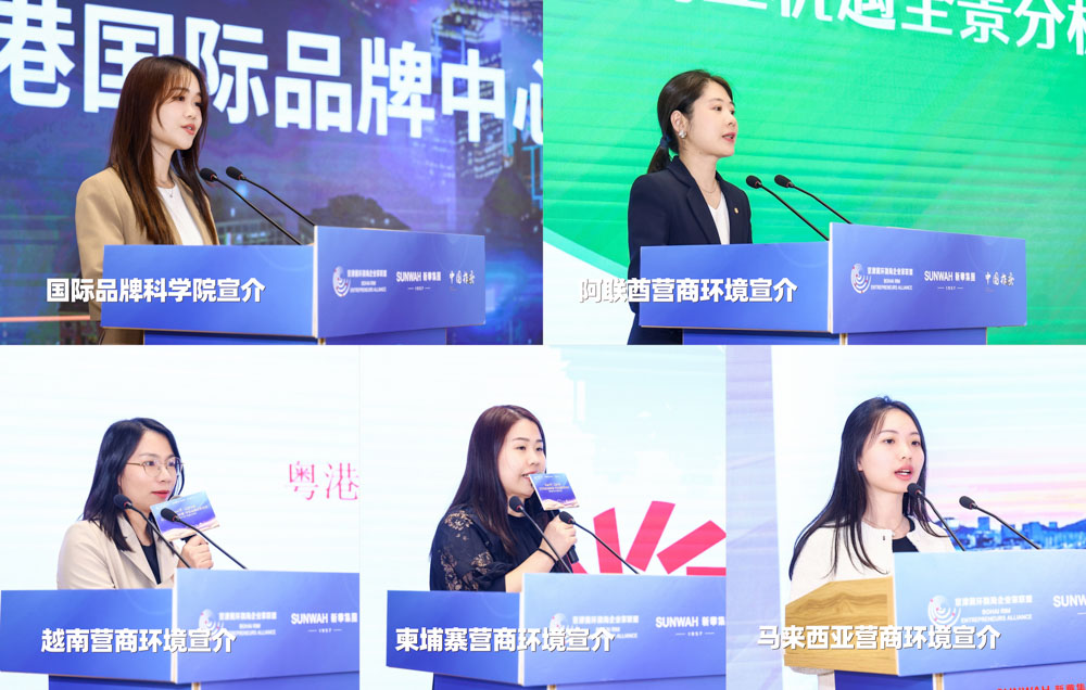 国际品牌科学院,以及粤港澳大湾区企业家联盟越南、柬埔寨、马来西亚、阿联酋等分会介绍香港打造国际品牌中心和中东、东盟地区营商环境及投资优势,本地企业与中东、东盟代表进行了对接洽商。