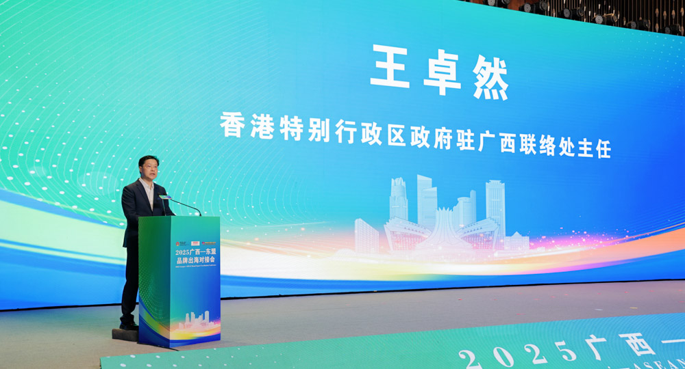 香港特别行政区政府驻广西联络处主任王卓然在致辞中希望广西企业到粤港澳大湾区投资创业,通过与大湾区的合作,实现共赢发展。