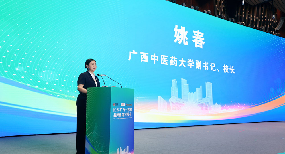 广西中医药大学校长姚春作为签约单位代表在会上发言。