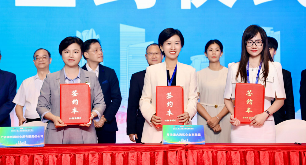 会议过程中,与会领导嘉宾上台为粤港澳大湾区企业家联盟广西分会揭幕并见证多场合作签约。包括:南宁市人民政府与粤港澳大湾区企业家联盟、新华集团签订战略合作协议;广西旅发集团、香港新华集团、广西中医药大学签订战略合作协议;粤港澳大湾区企业家联盟与广西粤港澳侨合作促进会签订在桂合作协议;广西南博国际会展有限责任公司、粤港澳大湾区企业家联盟、广西粤港澳侨合作促进会签订合作协议等。通过企业、高校、社会组织等多方合作,更好实现资源共享、促进共赢和可持续发展。