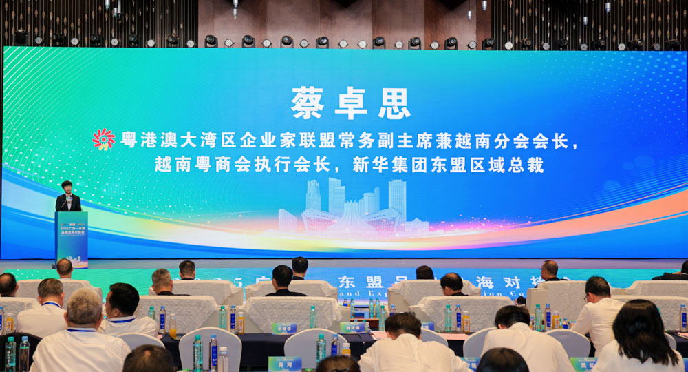 粤港澳大湾区企业家联盟常务副主席兼越南分会会长、越南粤商会执行会长、新华集团东盟区域总裁蔡卓思分享联盟与越南的合作成果以及集团未来在东盟的布局。