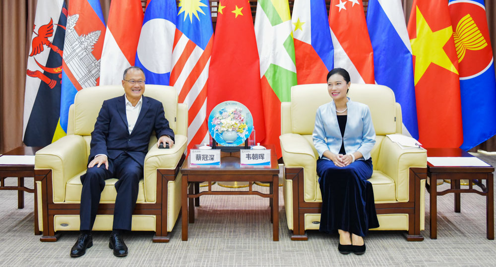 韦朝晖表示,热烈欢迎蔡冠深主席率联盟一行参加本届东博会,希望联盟充分利用东博会平台,展示大湾区建设成果和优势产业,推动会员企业与东盟及内地市场深度对接,结出更丰硕的经贸合作成果。