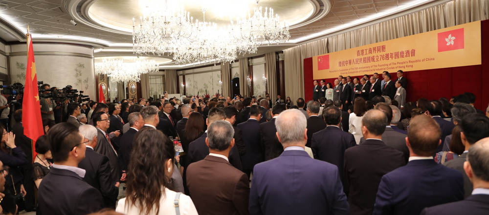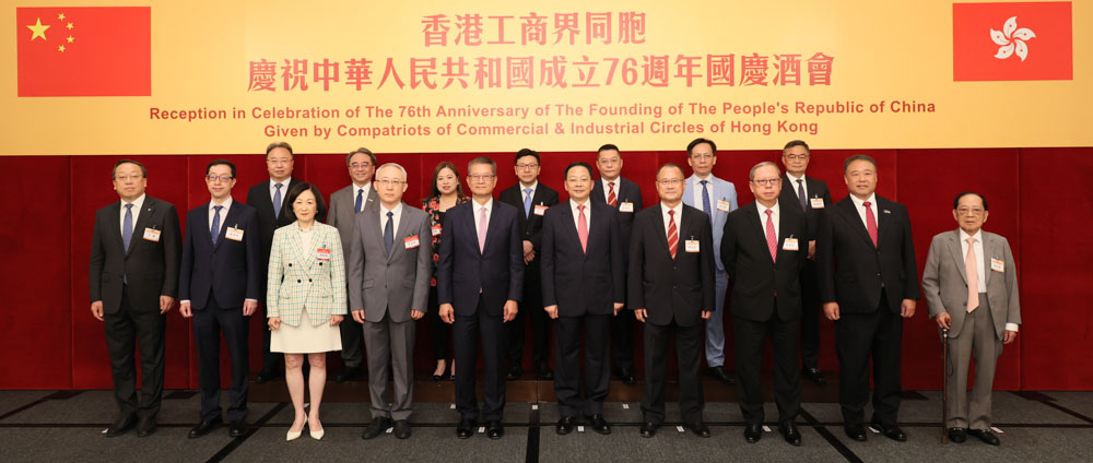 香港工商界同胞庆祝中华人民共和国成立76周年国庆酒会,9月16日于港岛香格里拉大酒店举行。特区政府财政司司长陈茂波、中央政府驻港联络办副主任尹宗华、外交部驻港公署副特派员李永胜、行政会议召集人叶刘淑仪等人担任主礼嘉宾,联同筹备委员会主席团成员、工商及社会各界友好逾500位嘉宾共同庆祝国庆。