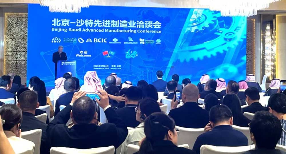 9月24日,“北京-沙特先进制造业洽谈会”在北京召开。本次会议由北京市贸促会、北京国际商会、中国机械工业联合会、沙特工业和矿产资源部、沙特商工总会共同主办,北京国际商会会长、北京市贸促会党组书记章建伟,沙特-中国商务理事会执行理事巴萨姆·哈马德,沙特工业和矿产资源部部长班达尔·胡莱夫等相关领导出席。