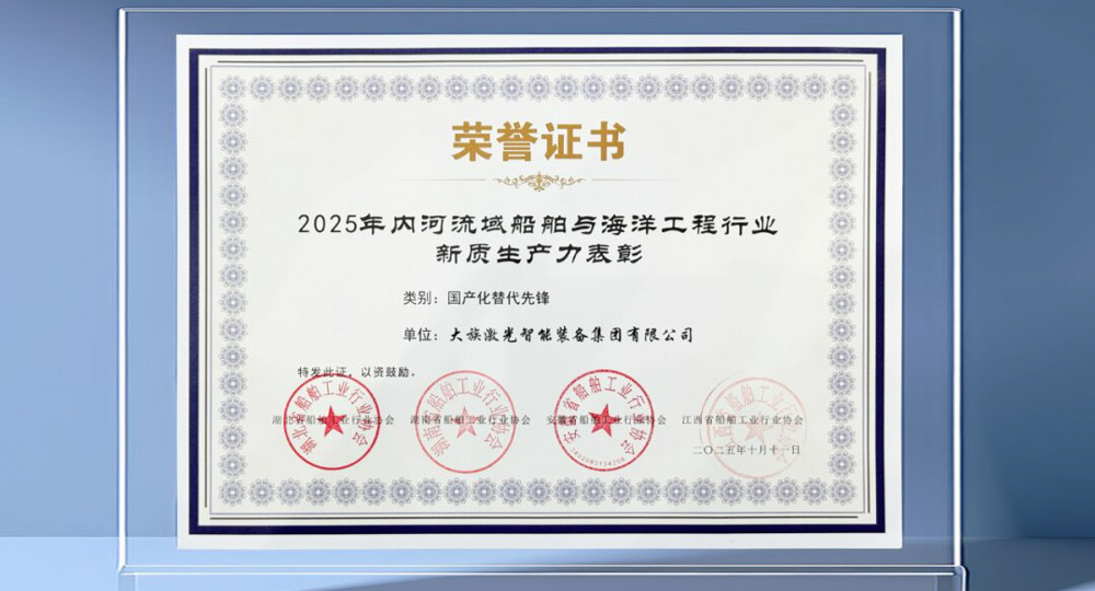 本次表彰聚焦内河船舶发展、绿色船舶设计与先进激光加工技术等关键领域,旨在为我国内河航运与海洋工程的高质量发展注入新动能。大族激光智能装备集团正是凭借线轨式大幅面激光切割机等设备在高效率、高质量与绿色环保方面的显著优势,成功荣获“国产化替代先锋”称号。这些设备已逐步替代等离子、火焰等传统工艺,成为推动行业提质增效与绿色智能转型的关键支撑。