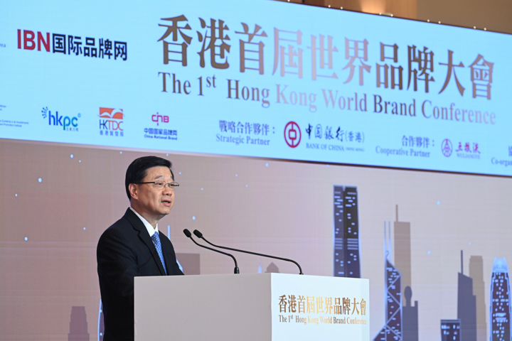 李家超致辞表示,国家“十四五”规划提出要开展中国品牌创建行动,保护发展中华老字号,提升自主品牌影响力和竞争力,并率先在消费品领域培育一批高端品牌。几年以来,国家在服装、家庭用品、运动用品等传统产业推陈出新,在创科领域发展更是一日千里,在通讯设备、新能源汽车,以至无人机等表现都让世界瞩目,成功打造出一个又一个国际知名品牌,很多更处于全球市场的领导地位。他指出,香港中西文化荟萃,除了拥有很多自身发展的国际知名品牌,更一直都是全球品牌汇聚的重要平台。多年以来,很多内地新兴消费品牌,包括特色餐饮、影视娱乐、专业服务,以至新能源产业,都首选香港作为企业“出海”的第一站。