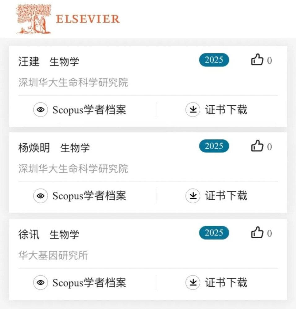 1月30日,爱思唯尔(Elsevier)正式发布2025“中国高被引学者”榜单。联盟常务副主席、华大集团董事长、联合创始人汪建,华大集团联合创始人、理事长杨焕明,华大集团首席研究员徐讯入选。这也是华大科研工作者连续12年跻身该榜单。