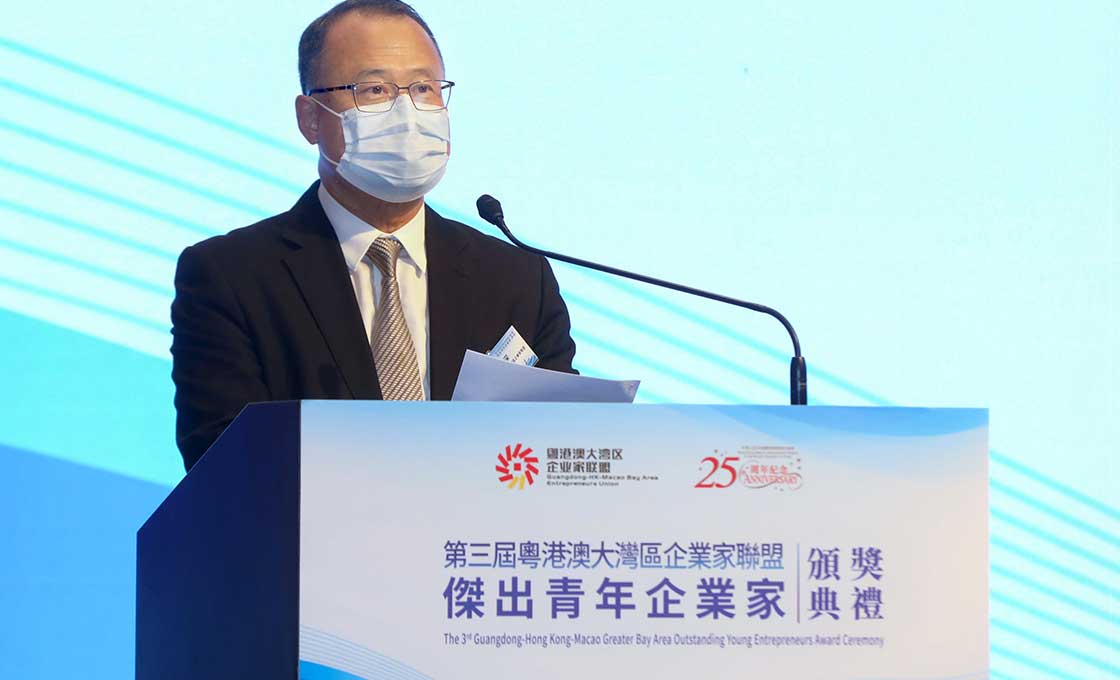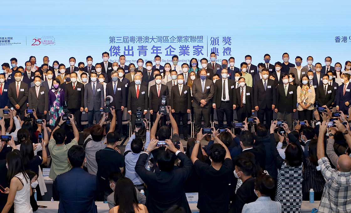 他指出,粤港澳大湾区杰出青年企业家评选的成功举办,就是最好的见证。这一届我们经过严格评审,从粤港澳三地逾千份报名表中,选出102位获奖者,他们是新一代企业的佼佼者。除从事传统优势行业外,亦涵盖大湾区内创新科技、高端制造业、医疗大健康、绿色能源等新兴领域。还有多家独角兽企业,以及在文化、社会公益等方面做出卓越贡献的青年企业家。不少粤港澳知名企业的第二代甚至是第三代掌舵人,凭借自己的出色业绩,在本次评选中获得殊荣。