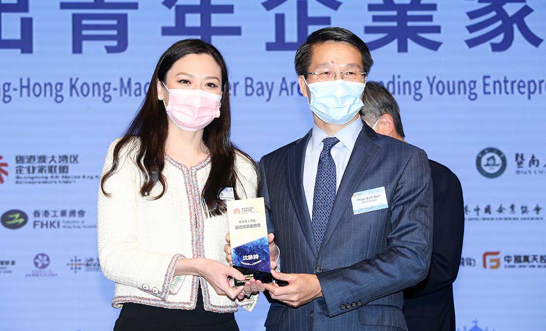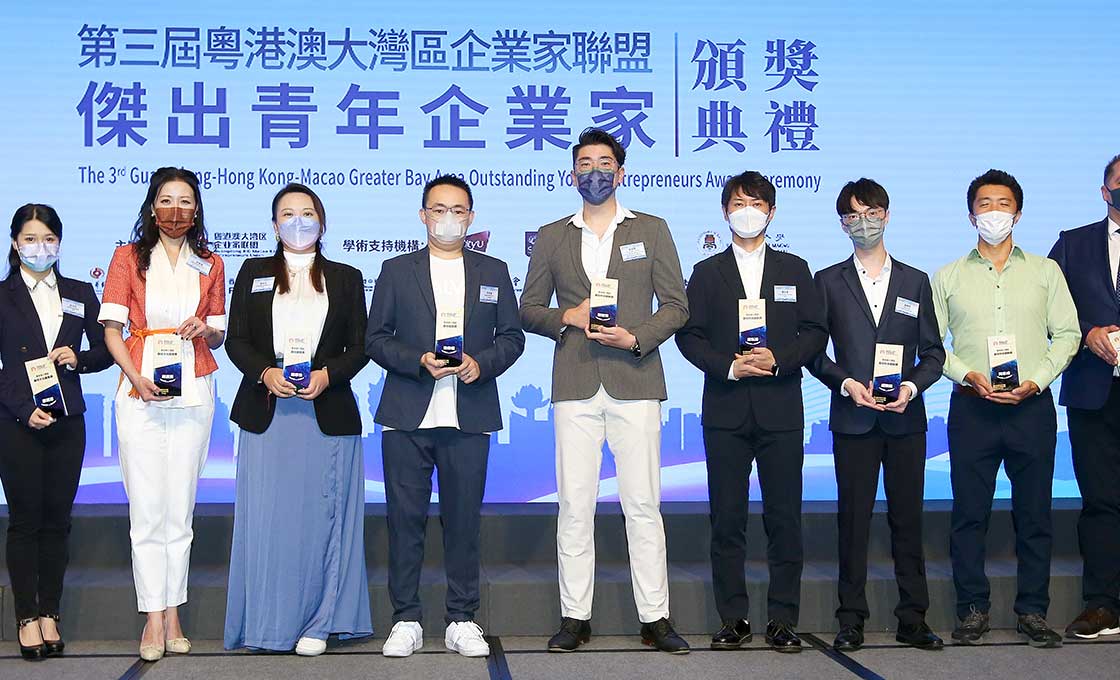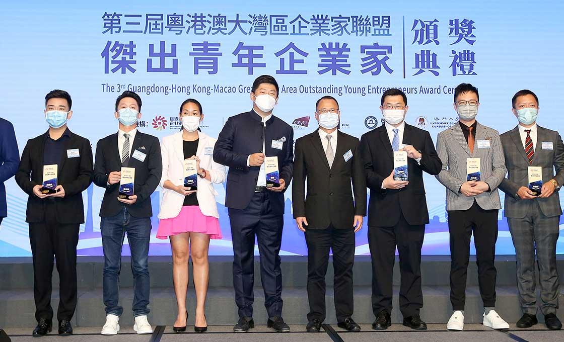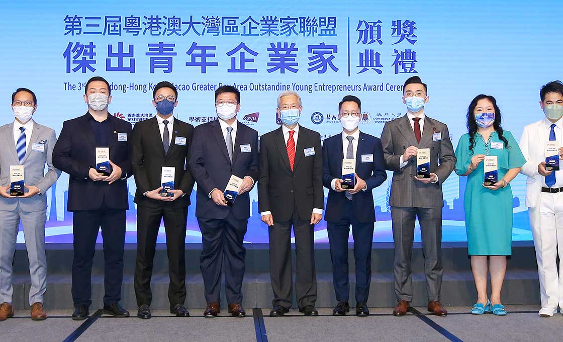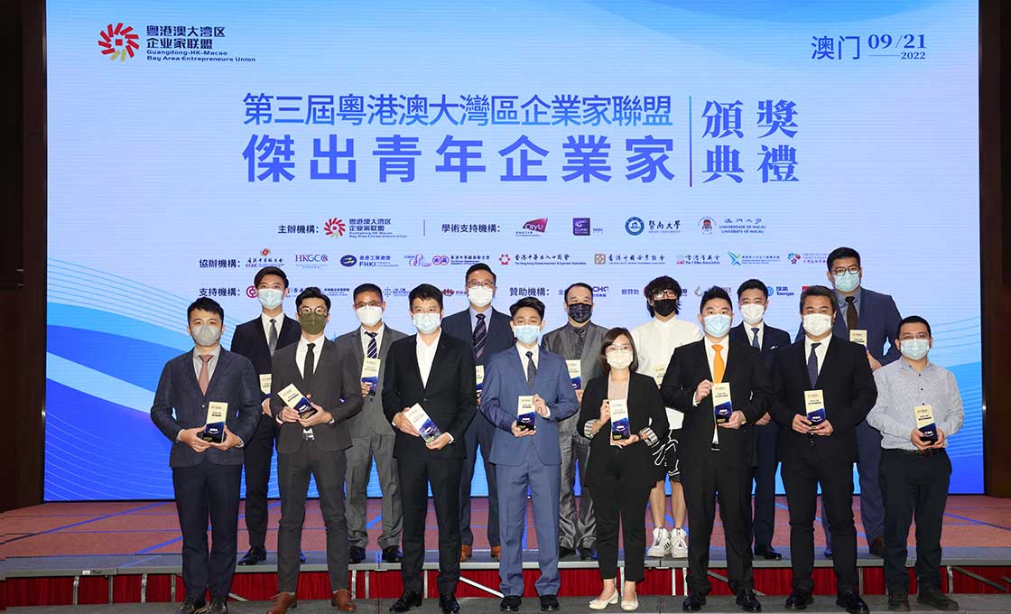 颁奖典礼由粤港澳大湾区企业家联盟主办,今届大会收到逾1000张报名表,经过两个多月审核,选出102位得奖者,分别获得粤港澳大湾区杰出青年企业家奖、最佳创业奖、最佳科技创新奖、最佳商业服务奖、最佳社会责任奖,以及最佳文化创意奖。