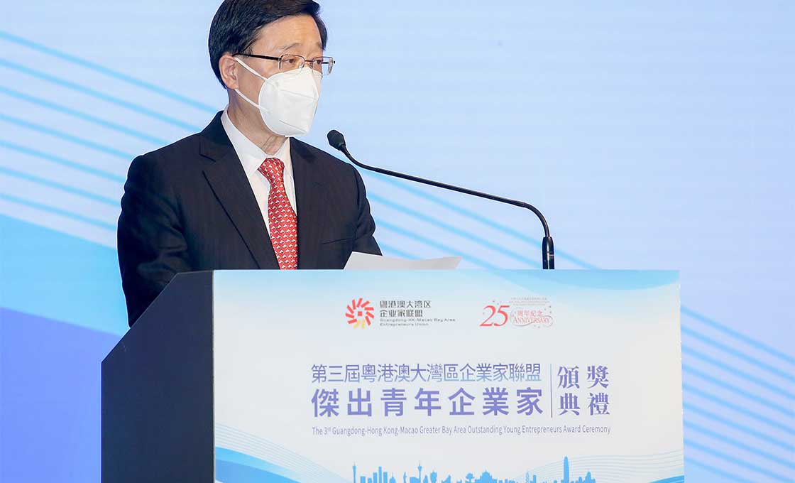 李家超特首致辞时称,粤港澳大湾区建设是国家改革开放下的重大发展战略。今届评选活动不但发扬企业家精神,更鼓励有志于大湾区创业的香港青年,踏出创业的第一步。特区政府会继续支持香港青年到大湾区发展,在更大的舞台上一展抱负。他祝贺得奖的杰出青年企业家,希望他们继续贡献粤港澳大湾区建设。