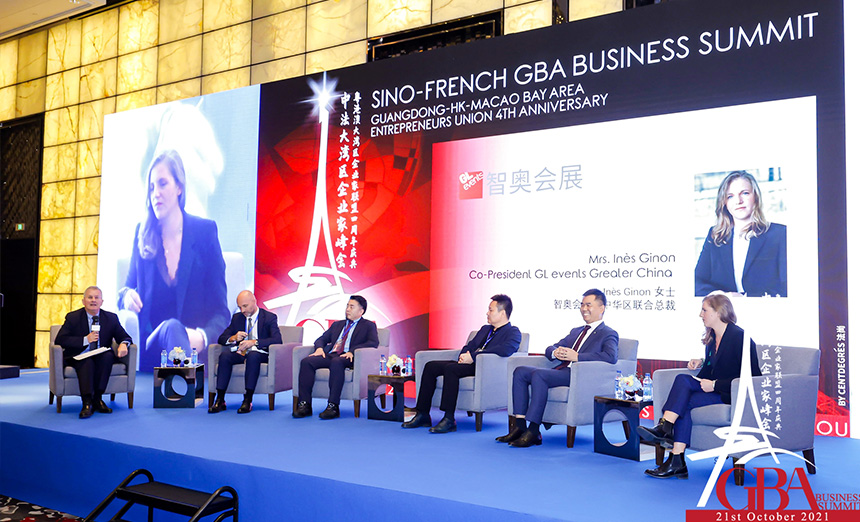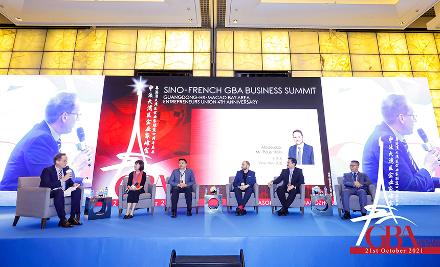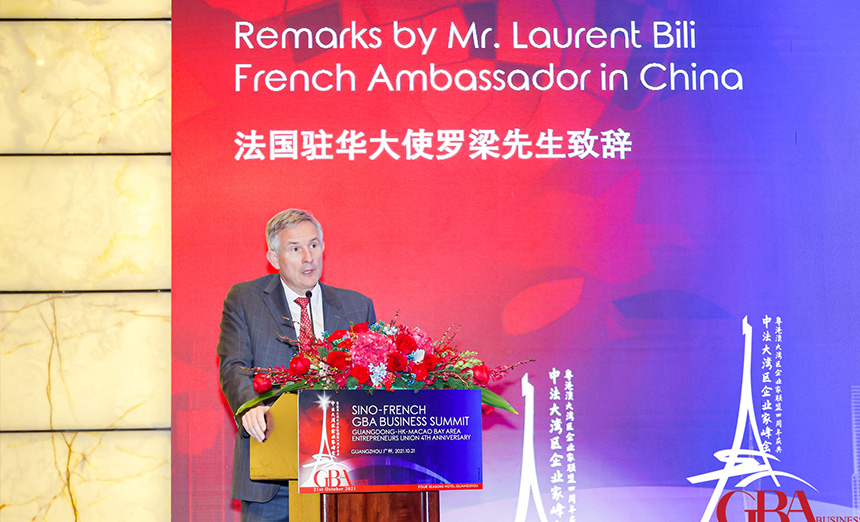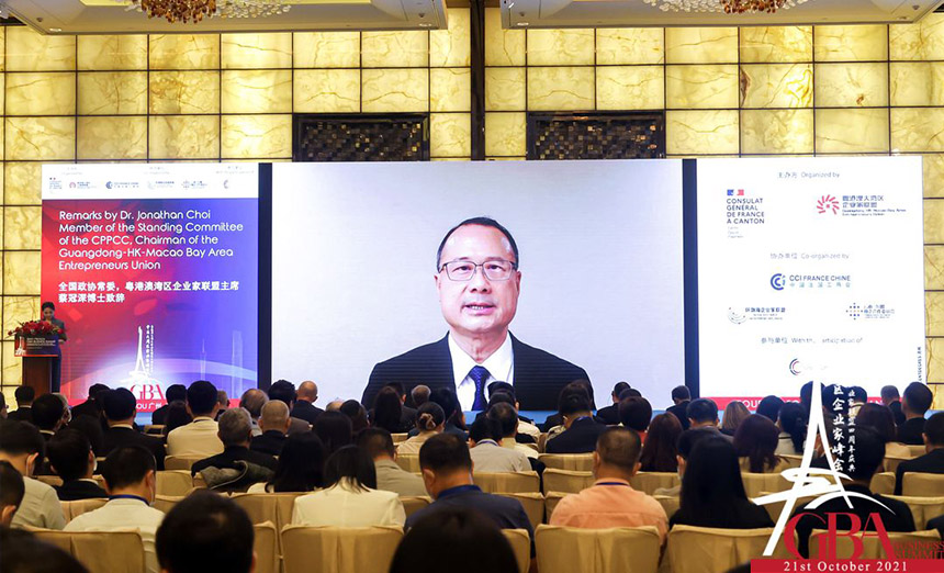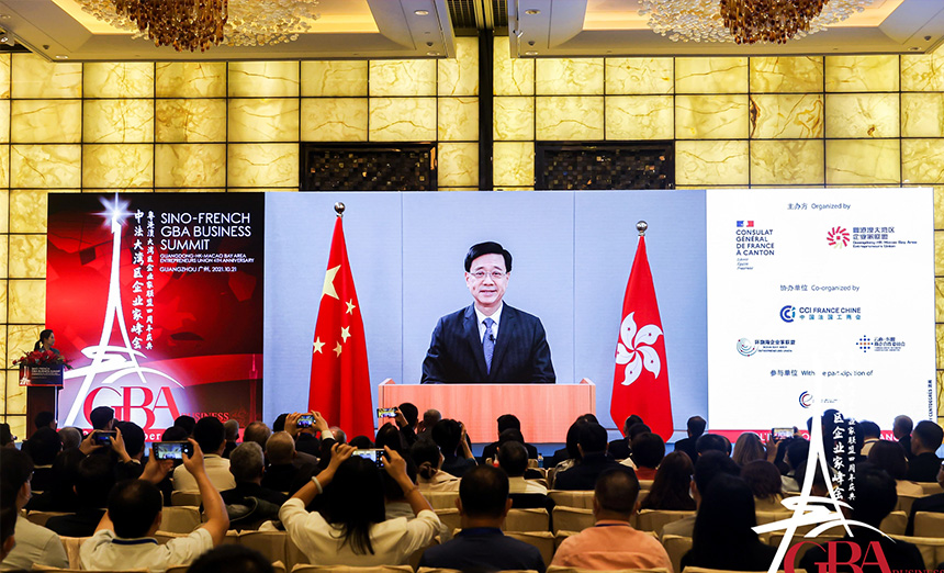 粤港澳大湾区企业家联盟四周年庆典暨中法大湾区企业家高峰论坛10月21日在广州举行。香港特区署理行政长官李家超,澳门特区政府经济财政司司长李伟农,法国驻华大使罗梁,法国驻广州总领事福希玮,全国政协常委、粤港澳大湾区企业家联盟主席蔡冠深,中国法国工商会会长乐睿思等三百位在华法商及近千位大湾区知名政商人士以线上线下形式出席。