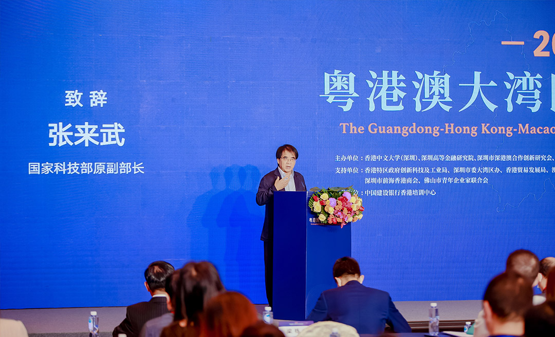 香港中文大学(深圳)校长徐扬生、国家科技部原副部长张来武、深圳市政协副主席吴以环、香港特区创新科技及工业局局长孙东、深圳市委政策研究室副主任王汝津、粤港澳大湾区企业家联盟主席蔡冠深、澳门贸易投资促进局行政管理委员会代主席余雨生于线上线下出席开幕式并致辞。