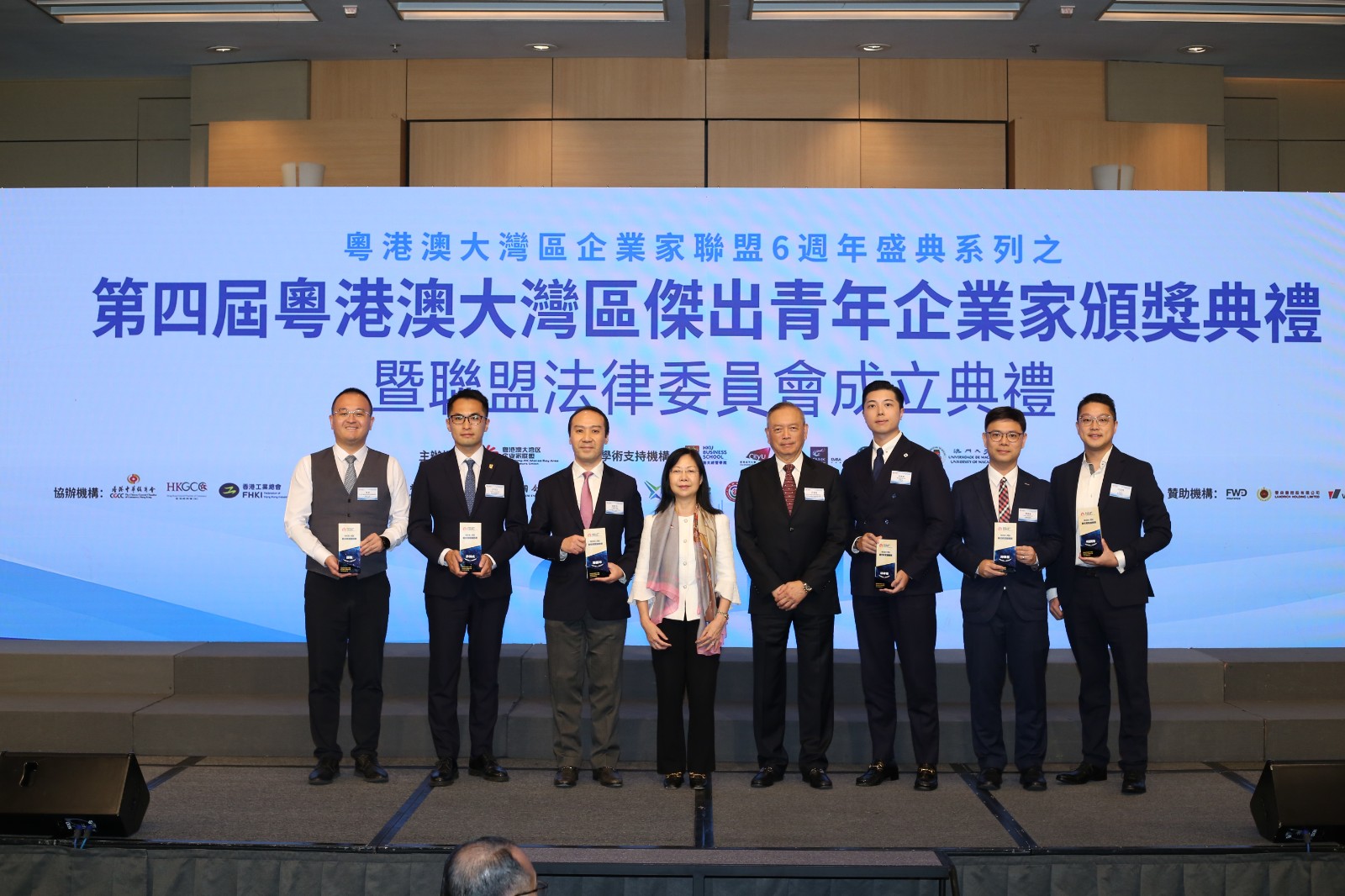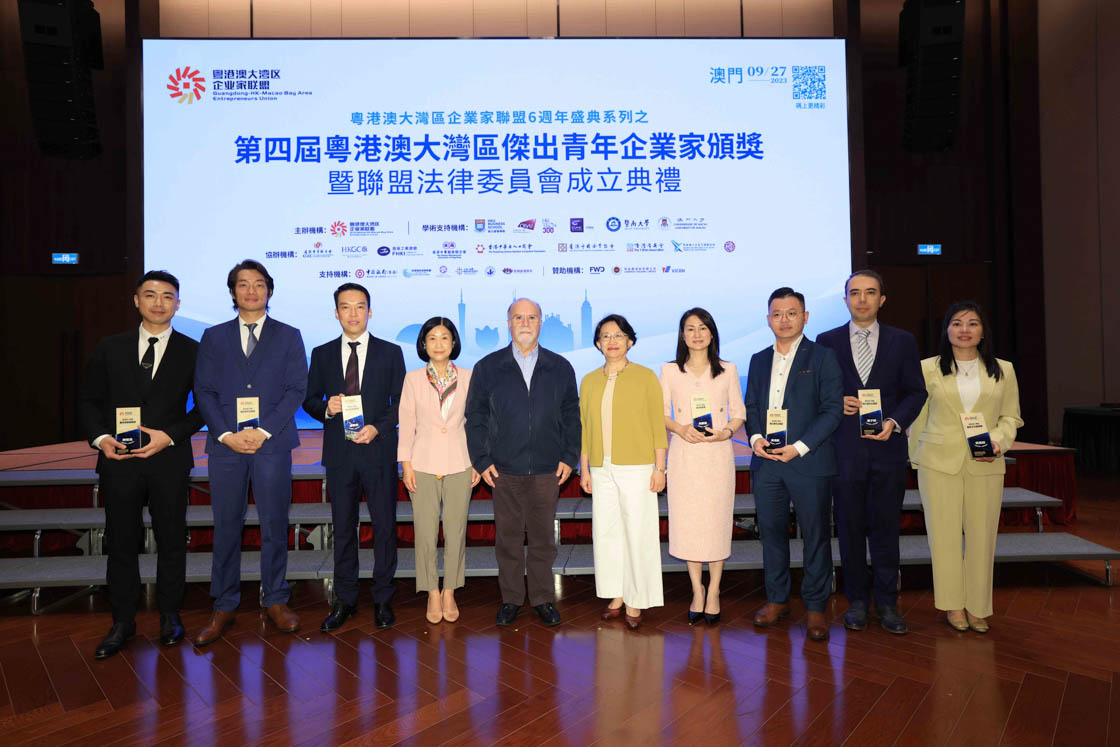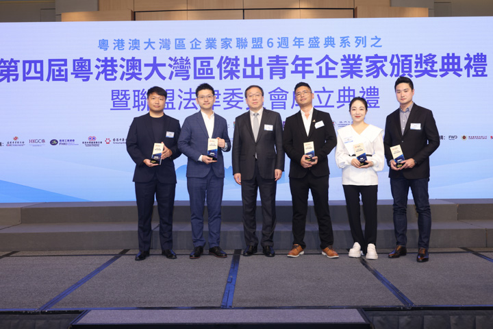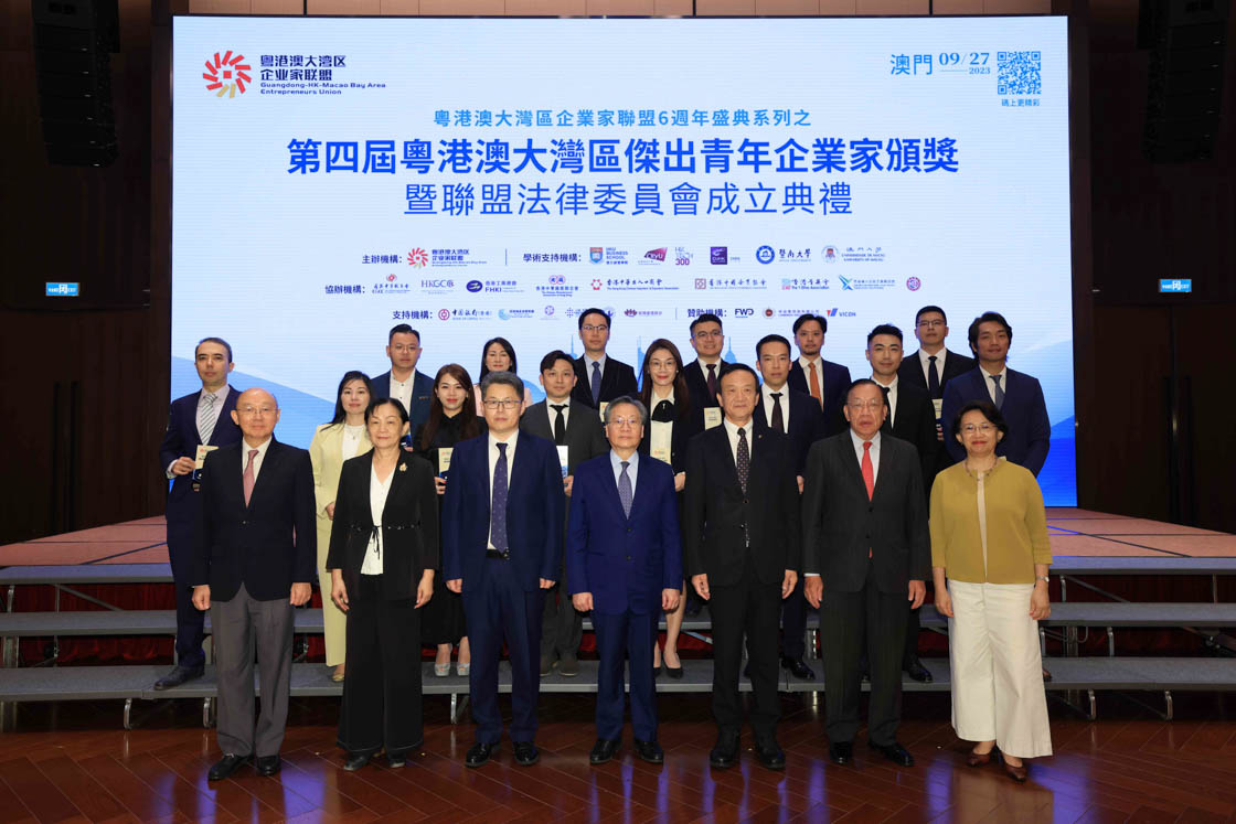 粤港澳大湾区企业家联盟六周年暨第四届粤港澳大湾区杰出青年企业家颁奖典礼2023年9月27日在港、深、澳三地同步举行,100位得奖者脱颖而出。香港特首李家超高度肯定“粤港澳大湾区企业家联盟”在二○一七年成立以来的工作。他指出:“企业家联盟一直促进粤港澳企业的交流合作,推动科技创新、青年创业、公益慈善等多方面工作。联盟更积极为计划在大湾区内发展的青年朋友提供引导和支持,协助他们一展抱负,希望联盟继往开来,再创辉煌。”