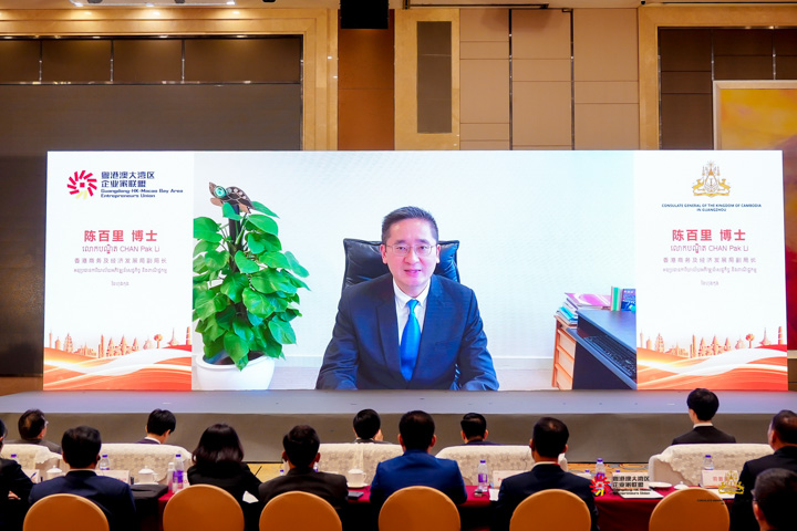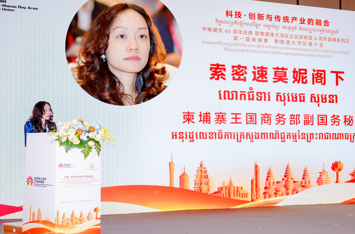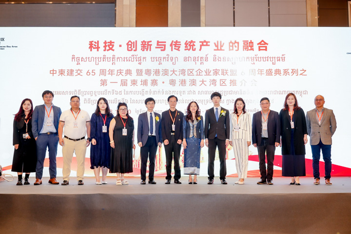 推介会主题为《科技·创新与传统产业的融合》暨庆祝中柬建交65周年与粤港澳大湾区企业家联盟成立6周年,广东省、广州市相关部门、香港特区政府商务及经济发展局与澳门贸易投资促进局等单位支持协助。