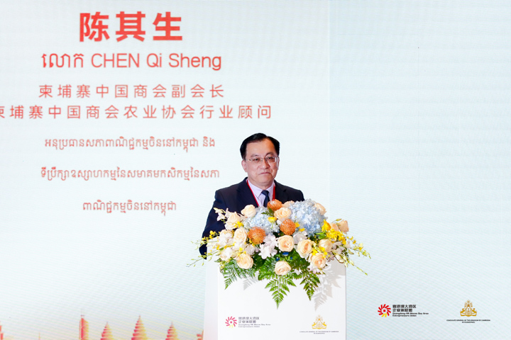推介会上,“一带一路”(柬埔寨)第一届大湾区经贸发展考察团正式成立。柬埔寨中国商会副会长、柬埔寨中国商会农业协会行业顾问陈其生在推介环节介绍柬埔寨投资环境和发展机遇。