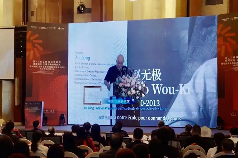 大会上播放了由全国政协常委、粤港澳大湾区企业家联盟主席、香港中华总商会会长、新华集团主席蔡冠深博士带头捐资出品的《赵无极大师纪录片》的花絮。该纪录片为庆祝中法建交六十周年而专门制作,介绍了赵无极大师从杭州学艺到香港历炼,并在法国提升融合中西文化,成为世界级艺术大师的经历,也是中法艺术交流的典范。