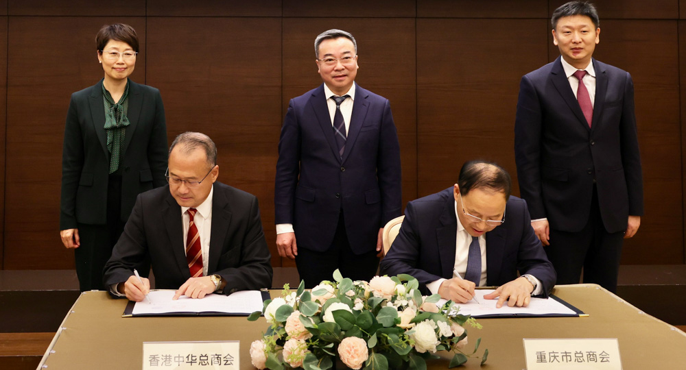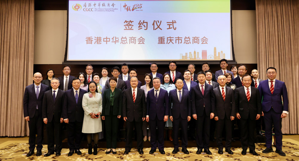 On March 24, Mr. Shang Kui, Chongqing Municipal Standing Committee Member and President of Chongqing Overseas Friendship Association, led a delegation to visit the Chinese General Chamber of Commerce (Hong Kong). Dr. Jonathan Choi, Standing Committee Member of CPPCC, Chairman of the Chinese General Chamber of Commerce, Guangdong-HK-Macao Bay Area Entrepreneurs Alliance, Bohai Rim Entrepreneurs Alliance and Sunwah Group, warmly received the delegation. They exchanged views on deepening cooperation and exploring business opportunities, and formally signed a strategic cooperation framework agreement.