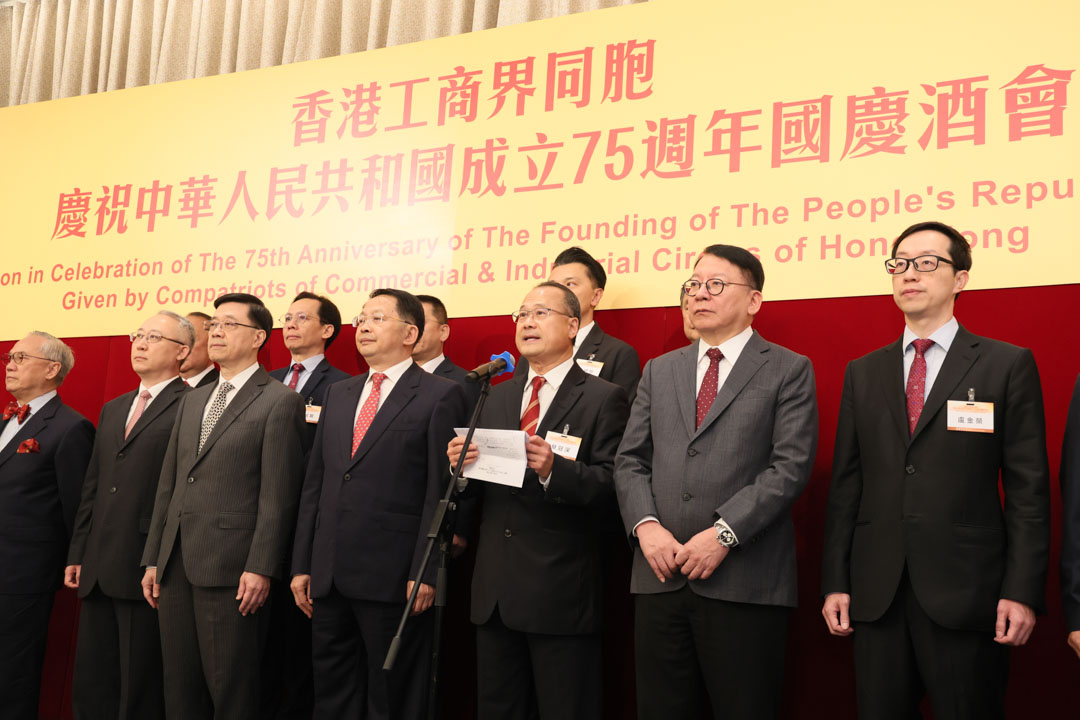 On September 25, given by Compatriots of Commercial & Industrial Circles of Hong Kong National Day Celebration Preparatory Committee, the Reception in Celebration of the 75th Anniversary of the Founding of the People's Republic of China was held in Hong Kong. Dr. Jonathan Choi, Executive Chairman of the Presidium of the Preparatory Committee, called on Commercial & Industrial Circles of HK to make positive contributions to the country's journey of further deepening reform Comprehensively, promoting high-level opening up and development, and writing a new chapter for the sustainable development of the country and Hong Kong.