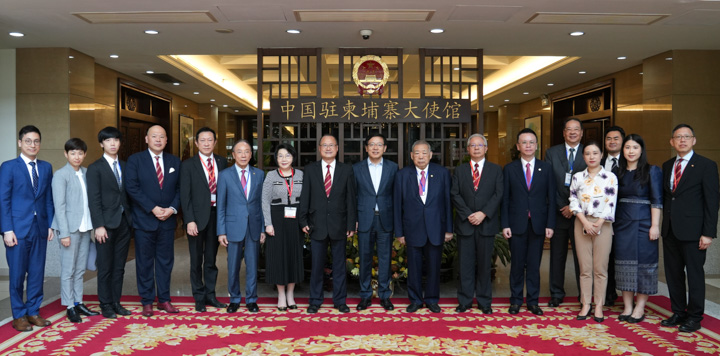 On April 9, Dr. Jonathan Choi, Standing Committee Member of CPPCC, Chairman of the CGCC, GBA Entrepreneurs Union and Sunwah Group, led some members of the delegation of the GBA Entrepreneurs Union to visit Mr. Wang Wentian, Chinese Ambassador to Cambodia, and briefed on the results of nearly 70 entrepreneurs' visit to Cambodia in the past two days.