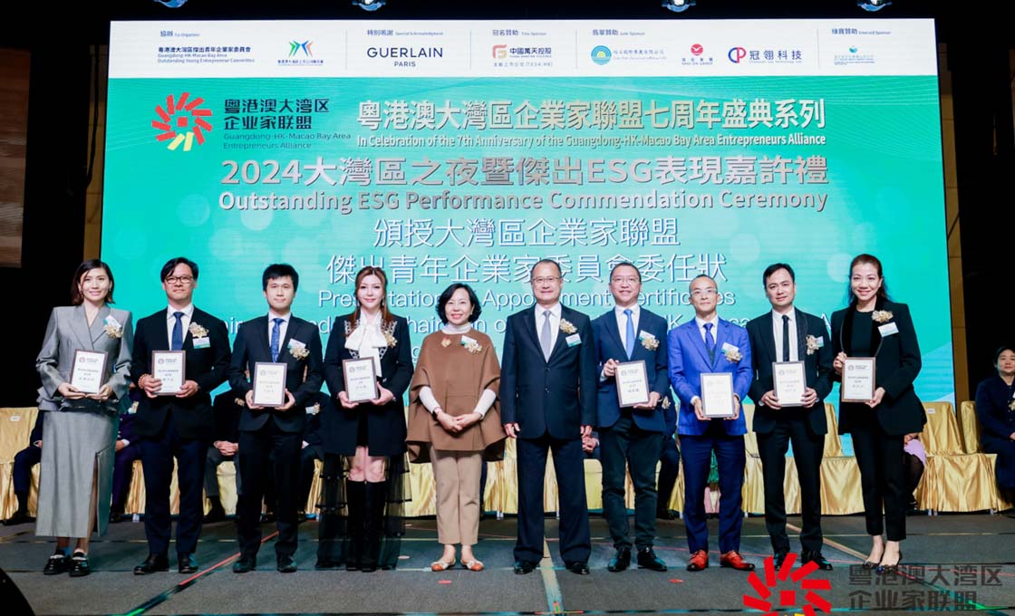 November 30, 2024 – The Greater Bay Area Entrepreneurs Alliance celebrated its 7th Anniversary with a grand ceremony. Concurrently, the O-YEC held its leadership transition ceremony, with Ms. Carmon Choi, Vice Chairperson of the Glorious Sun Group, assuming the role of Second-Term Chairperson. The new Vice Chairpersons are Mr. Lam Chi-ying, Mr. Ye Changchun, Mr. Zhong Xueyong, Mr. Jackson Choi, Mr. Chen Shaoshan, Ms. Susan Chen, and Ms. Wu Honghong. Ms. Alice Mak, Secretary for Home and Youth Affairs of the Hong Kong SAR Government, presented the letters of appointment.