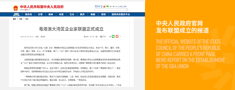 In response to General Secretary Xi Jinping's personal planning, deployment, and promotion of the national strategy of building the Guangdong Hong Kong Macao Greater Bay Area, in December 2017, representatives from the business community of Guangdong Hong Kong Macao officially established the "Guangdong Hong Kong Macao Greater Bay Area Entrepreneurs Alliance" in Qianhai, Shenzhen.