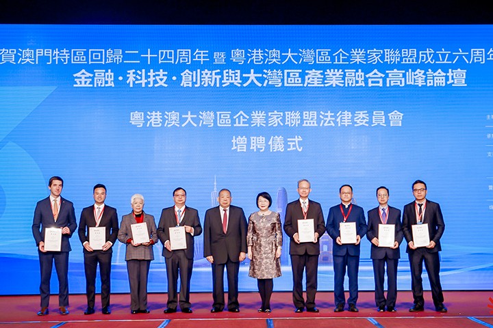 To accelerate the convergence of the three jurisdictions' legal systems and provide more diversified legal safeguards for international developers in the Greater Bay Area under the "One Country, Two Systems" principle, the Alliance held an appointment ceremony for new members of its Legal Committee during the forum. Standing Committee Member of the National Committee of the Chinese People's Political Consultative Conference and Vice Chairman of the Macao Basic Law Committee under the National People's Congress, Mr. Chui Sai Cheong, was appointed as Director of the Advisory Council. Four distinguished figures, including Chairman of the Macao Lawyers Association and Member of the Macao Basic Law Committee of the NPC, Mr. Wong Hin Fai, were appointed as Committee Advisors. Five legal professionals, such as Secretary-General of the Macao Lawyers Association Ms. Poon Ai I, were appointed as Vice Chairpersons of the Committee.