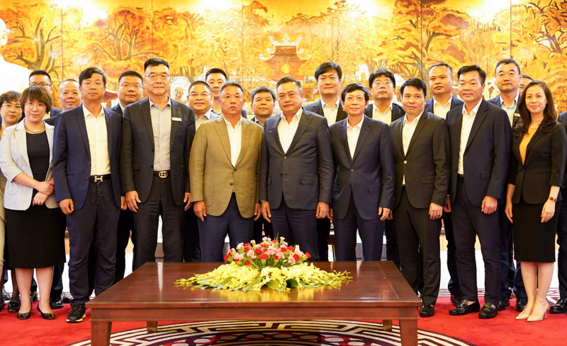 越共中央委员、河内市委副书记、市人民委员会主席陈士青与考察团一行合影留念