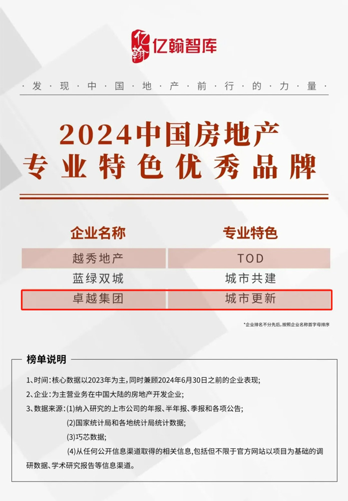 荣誉镌刻过往,认可激励前行。卓越集团还将坚持稳健与韧性,通过在多元领域的高质量发展探索实践,在行业新旧动能转换的关键期,坚定不移地发挥行业影响力,担当前瞻探路者的重要角色。
