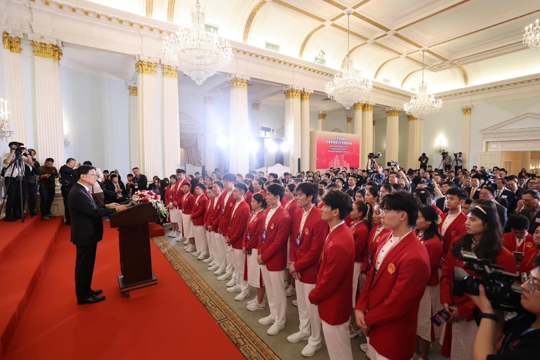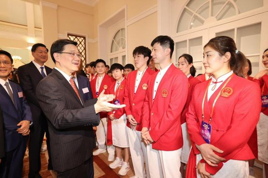 李家超指出,向代表团成员表达自己和香港市民对内地健儿的热烈欢迎和爱戴。大家都十分期待在未来三天的一连串活动中,欣赏他们示范表演羽毛球、体操、乒乓球、跳水及游泳等多个项目,以及与学生、市民和香港精英运动员互动交流。