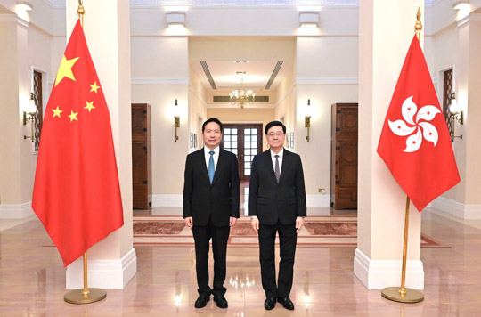 香港特区行政长官李家超今日(九月三日)在礼宾府与陕西省委书记赵一德会面,就深化陕港交流合作交换意见。政务司司长陈国基、政制及内地事务局局长曾国衞和行政长官办公室主任叶文娟亦有出席。