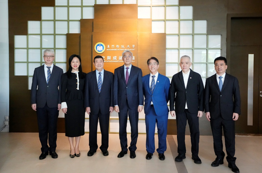 尹弘书记一行最后参观校史与成就展厅,全面了解澳科大建校历史、近年发展及未来愿景。在参观交流过程中,尹弘书记赞扬澳科大作为一所年轻大学发展飞快,发展迅速,医工科研成果卓越。廖泽云校监与李行伟校长均表示,澳科大将围绕科学研究、人才培养、成果转化等方面,不断深化与江西的务实合作,为加快发展新质生产力、促进赣澳融合发展贡献更大力量;尹弘书记回应指,希望澳科大发挥国际化办学优势,与江西省高校在合作办学、学术研究、人才培养等方面深化合作,积极参与江西省重点实验室等创新研究平台建设,促进教育和科技研发等资源分享、优势互补,实现双方互惠互利、共同发展。随后双方合影留念。