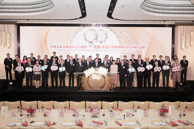 为庆贺中华人民共和国成立75周年及厂商会创会90周年的双重喜悦,香港中华厂商联合会(厂商会)昨日(12日)假香港海洋公园万豪酒店举行志庆晚宴,邀得香港特别行政区行政长官李家超、中联办主任郑雁雄、中国外交部驻港特派员公署副特派员李永胜、前任行政长官林郑月娥、政务司司长陈国基、立法会主席梁君彦,以及行政会议非官守议员召集人叶刘淑仪担任主礼嘉宾。近800名政府官员、行政会议成员和立法会议员、各国领事,以及来自两岸四地的工商界及社会领袖等重要嘉宾出席,一同见证这个别具意义的重要时刻。