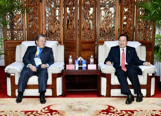10月22日,福建省省长赵龙在福州会见了菲律宾菲华商联总会理事长施东方率领的访问团一行。省委常委、统战部部长林文斌参加。