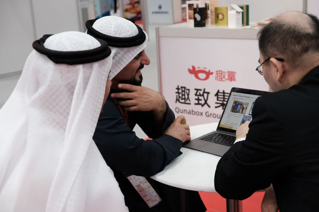 阿布扎比经济发展局副局长拉希德•阿卜杜勒卡里姆•阿勒布卢利,现场体验了AI互动终端,并询问相关技术细节和商业模式。同时,众多消费品、科技公司的中东负责人也体验并了解趣致集团提供的创新营销解决方案,多家企业与趣致集团现场达成了合作意向。