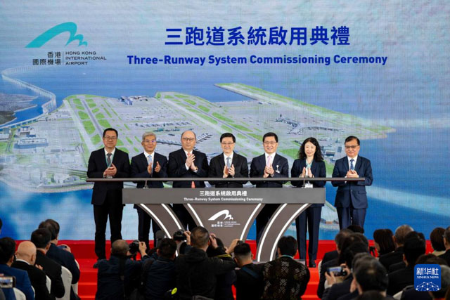 机管局主席林天福说,三条跑道全面投入运作,标志着香港国际机场发展迈入新里程。三跑道系统将为进一步扩大广阔的航空联通网络创造条件,巩固香港国际航空枢纽地位,同时也会为“机场城市”计划提供发展动力,支持香港经济发展。