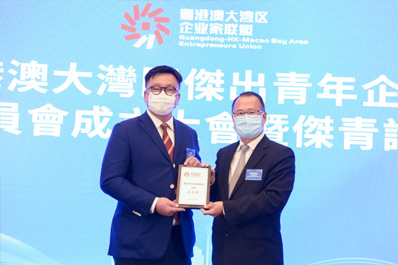 全国政协常委、粤港澳大湾区企业家联盟主席蔡冠深寄语在座的杰出青年企业家,"期待你们成为杰青委员会的先锋力量和纽带,加强与青年企业家的联络,加强与大湾区、全中国以至海外的交流,共同打造好资源对接、开放共享、并肩前行的平台。"
